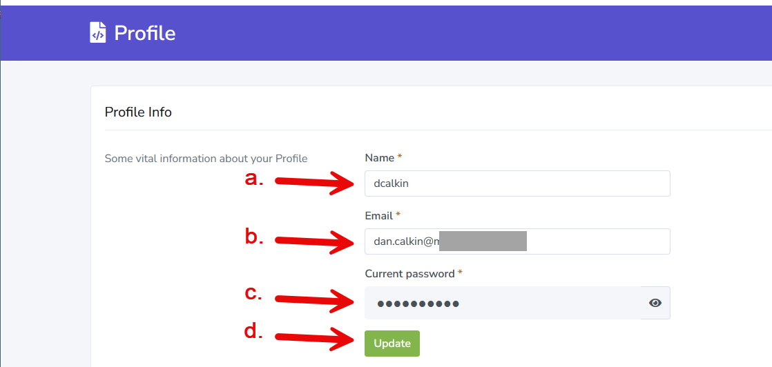 b. Update the 'Email' field contents to the new email address to be use as the primary login for the account.
