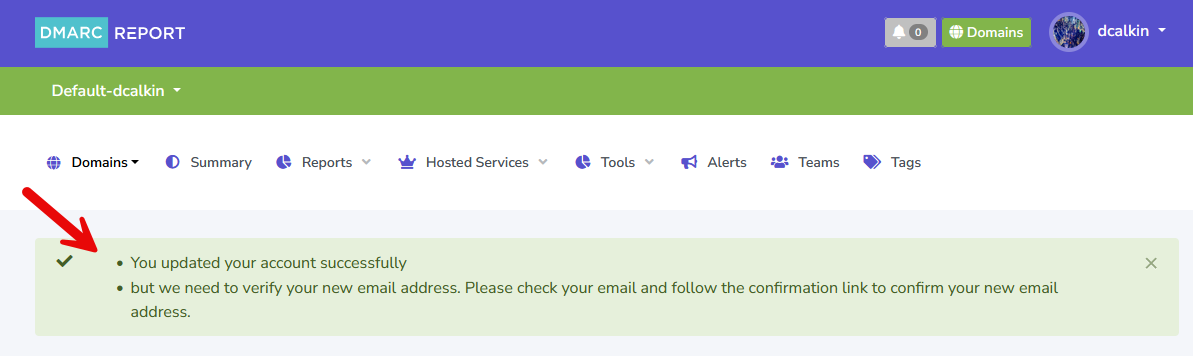 1. Navigate to https://app.dmarcreport.com/ and login with the current primary account username.